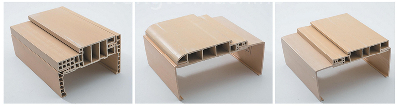 PE plastika + 10%-15% ojačana s steklenimi vlakni + 50-60% lesni prah + koekstrudirana plast proti staranju + ojačana struktura |