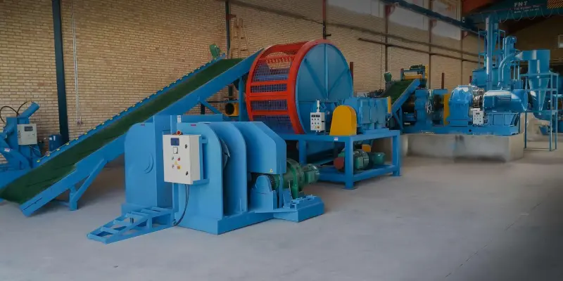 Stroj za drobljenje pnevmatik: uporablja se za drobljenje kosov gume v gumijaste bloke